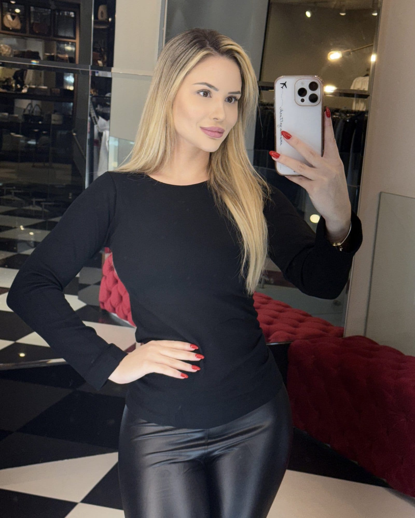 Medidas da modelo: Altura 1,70; Peso 62kg; Cintura 65cm; Busto 96cm; Quadril 101cm;