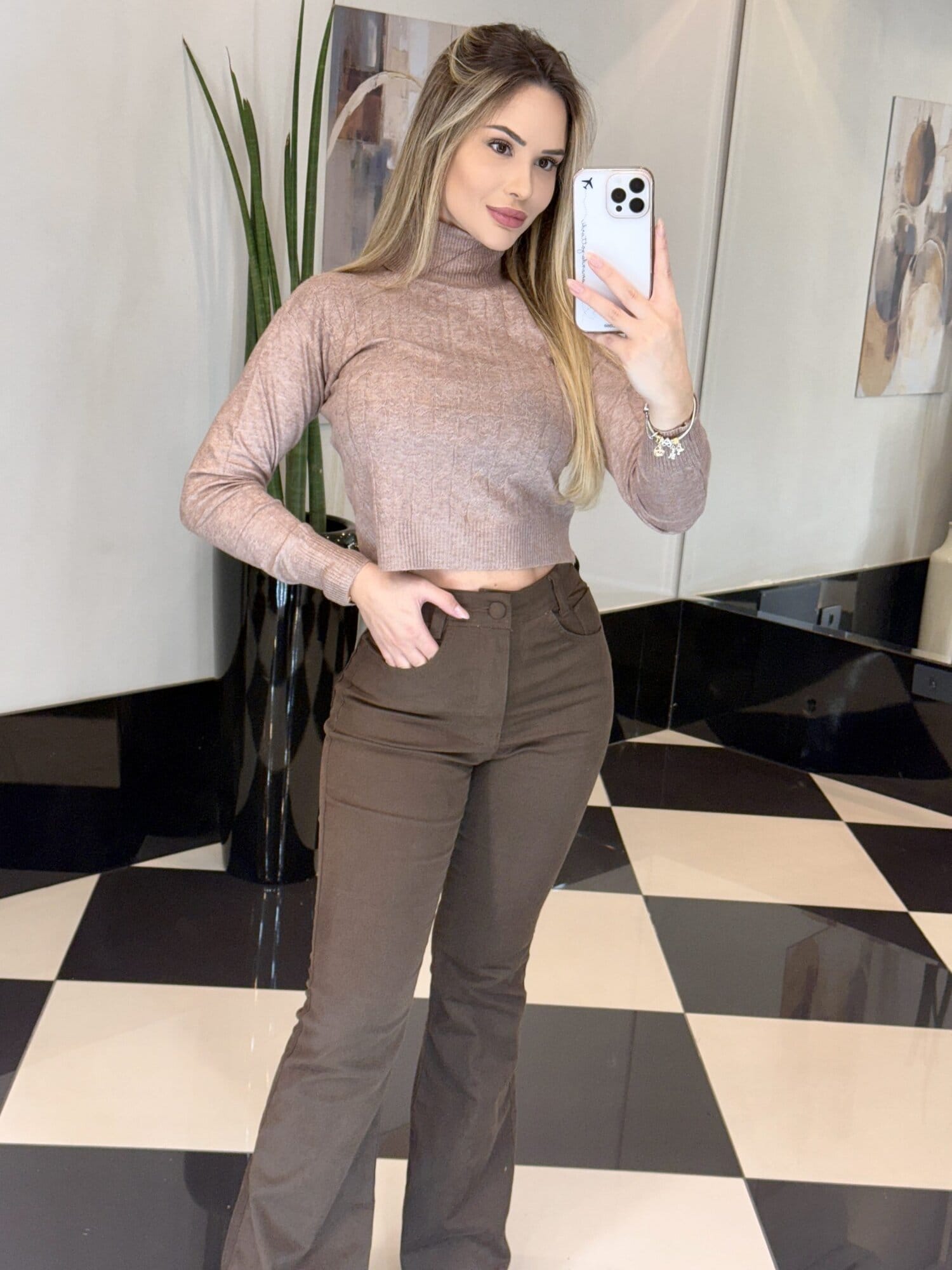 Medidas da modelo: Altura 1,70; Peso 62kg; Cintura 65cm; Busto 96cm; Quadril 101cm;