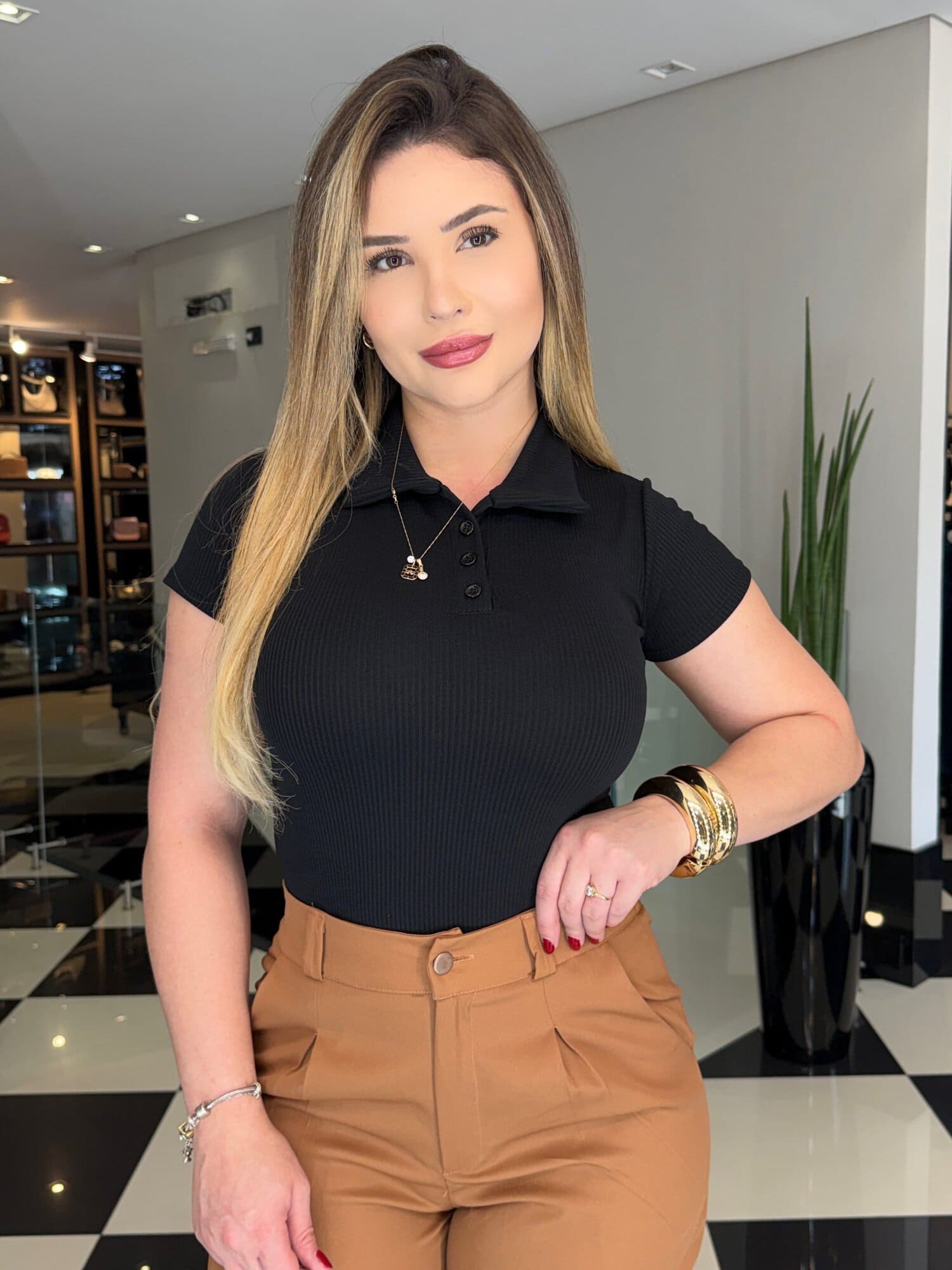 Medidas da modelo: Altura 1,70; Peso 62kg; Cintura 65cm; Busto 96cm; Quadril 101cm;