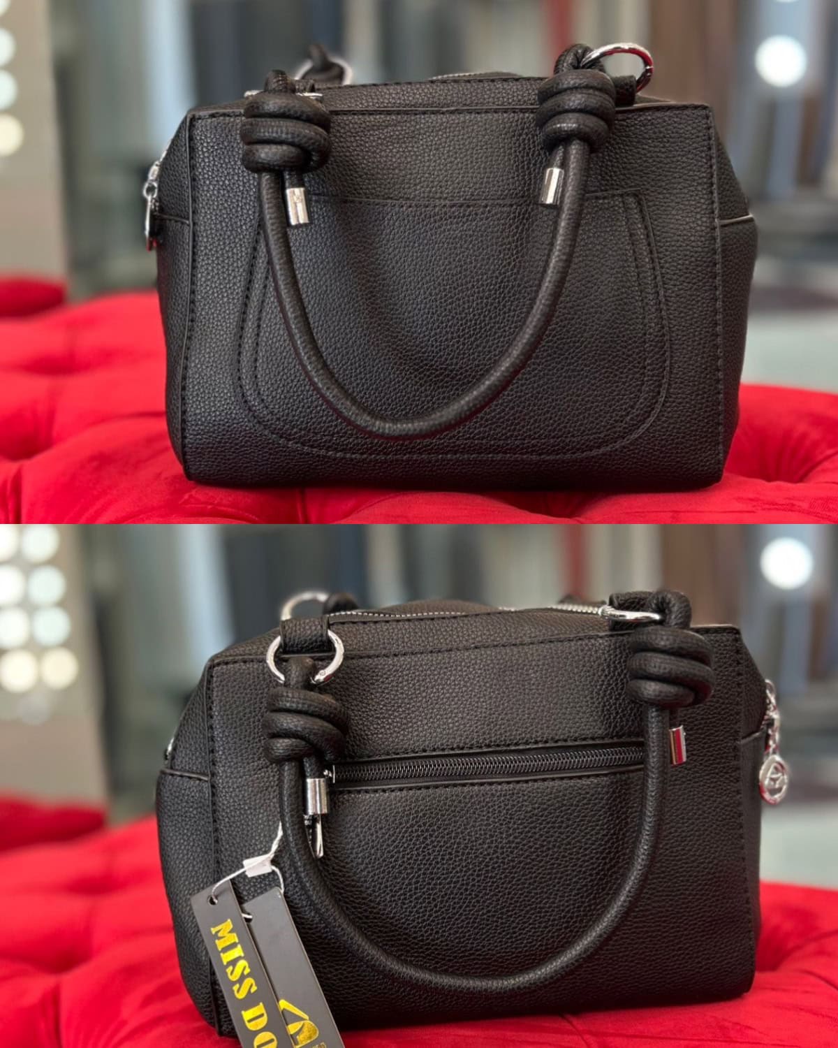 • Detalhes extras: nós decorativos na alça, bolso externo traseiro, zíper superior, forro interno, divisorias;