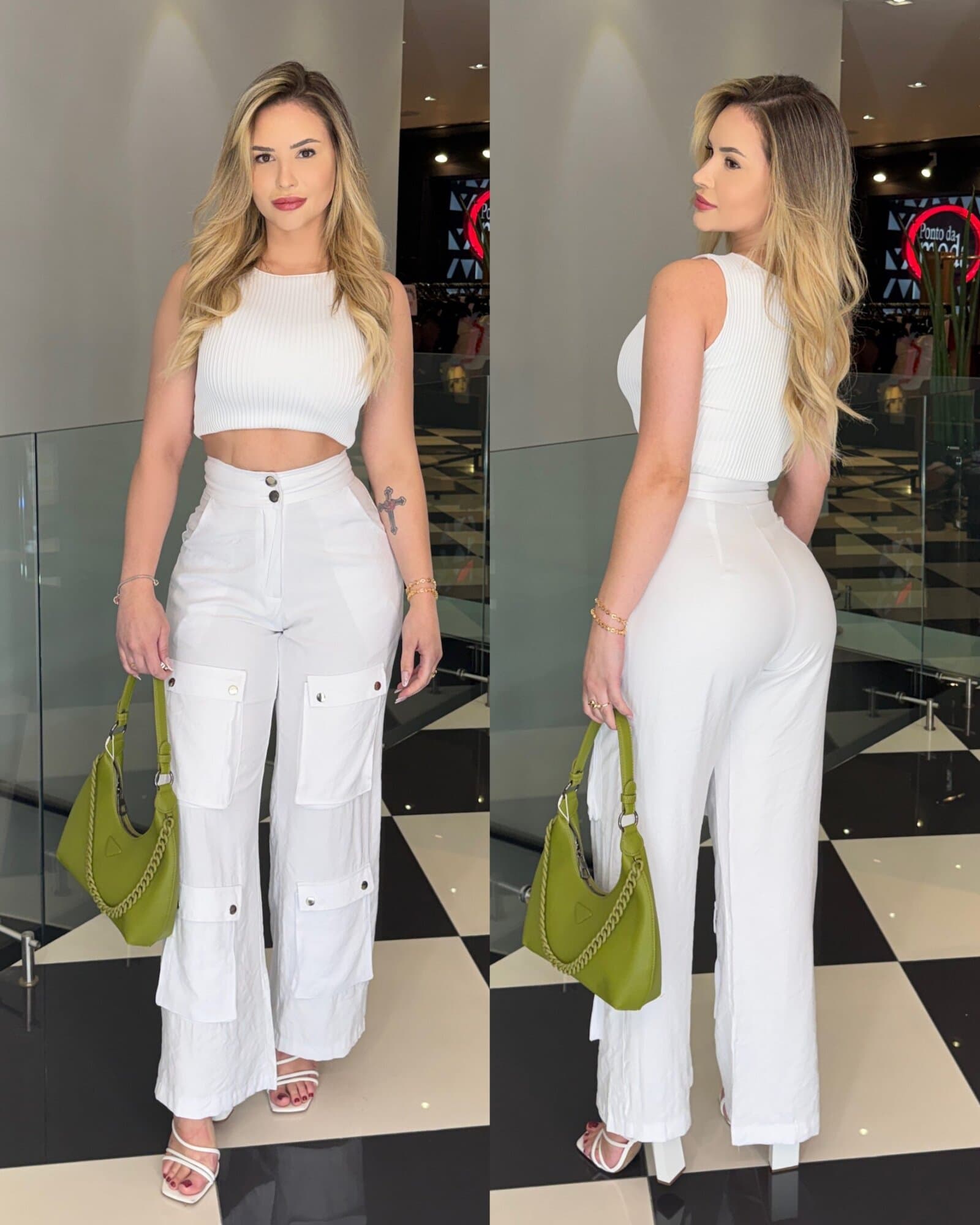 Calça Cargo Wide Leg Lizy Branca