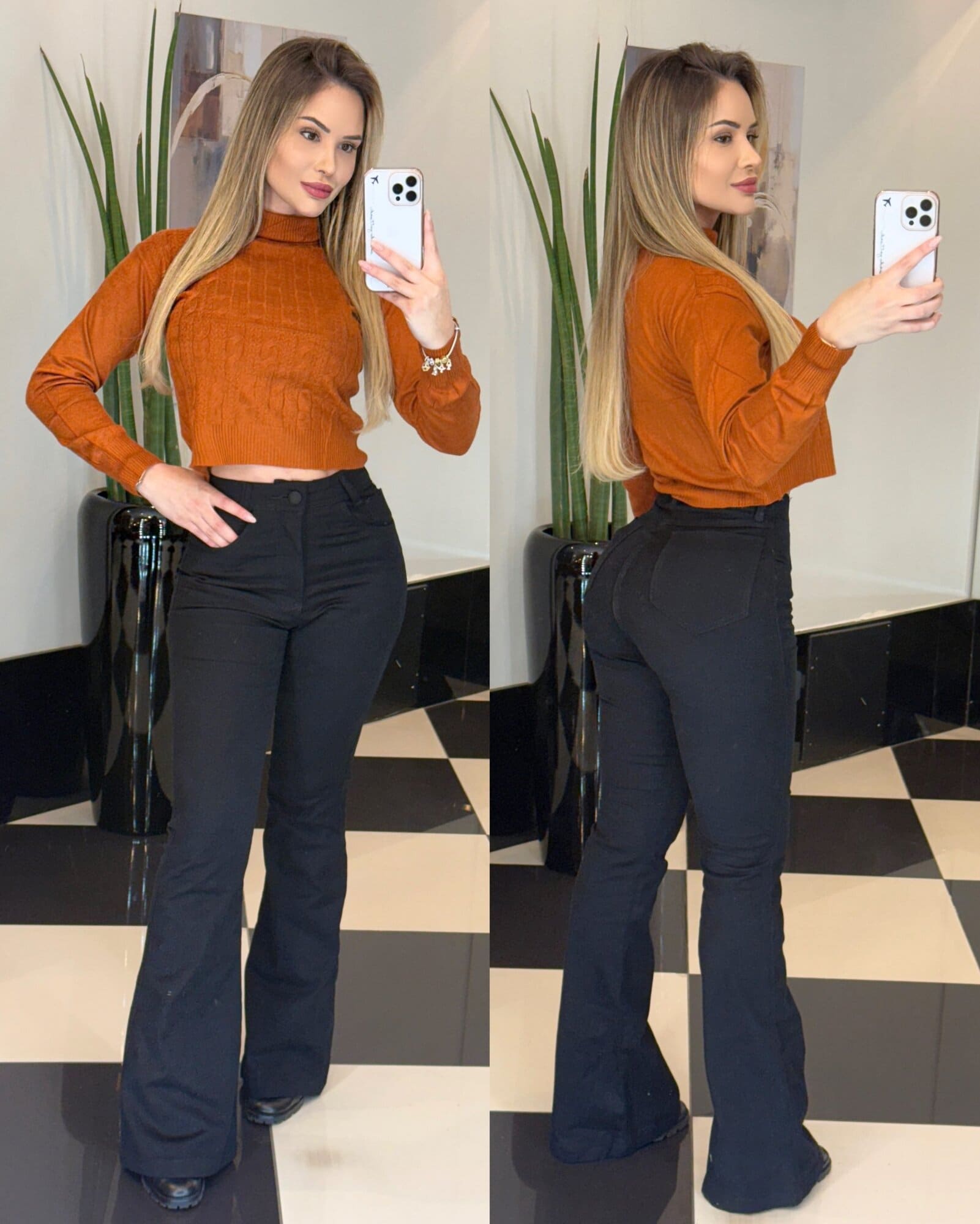 Medidas da modelo: Altura 1,70; Peso 62kg; Cintura 65cm; Busto 96cm; Quadril 101cm;