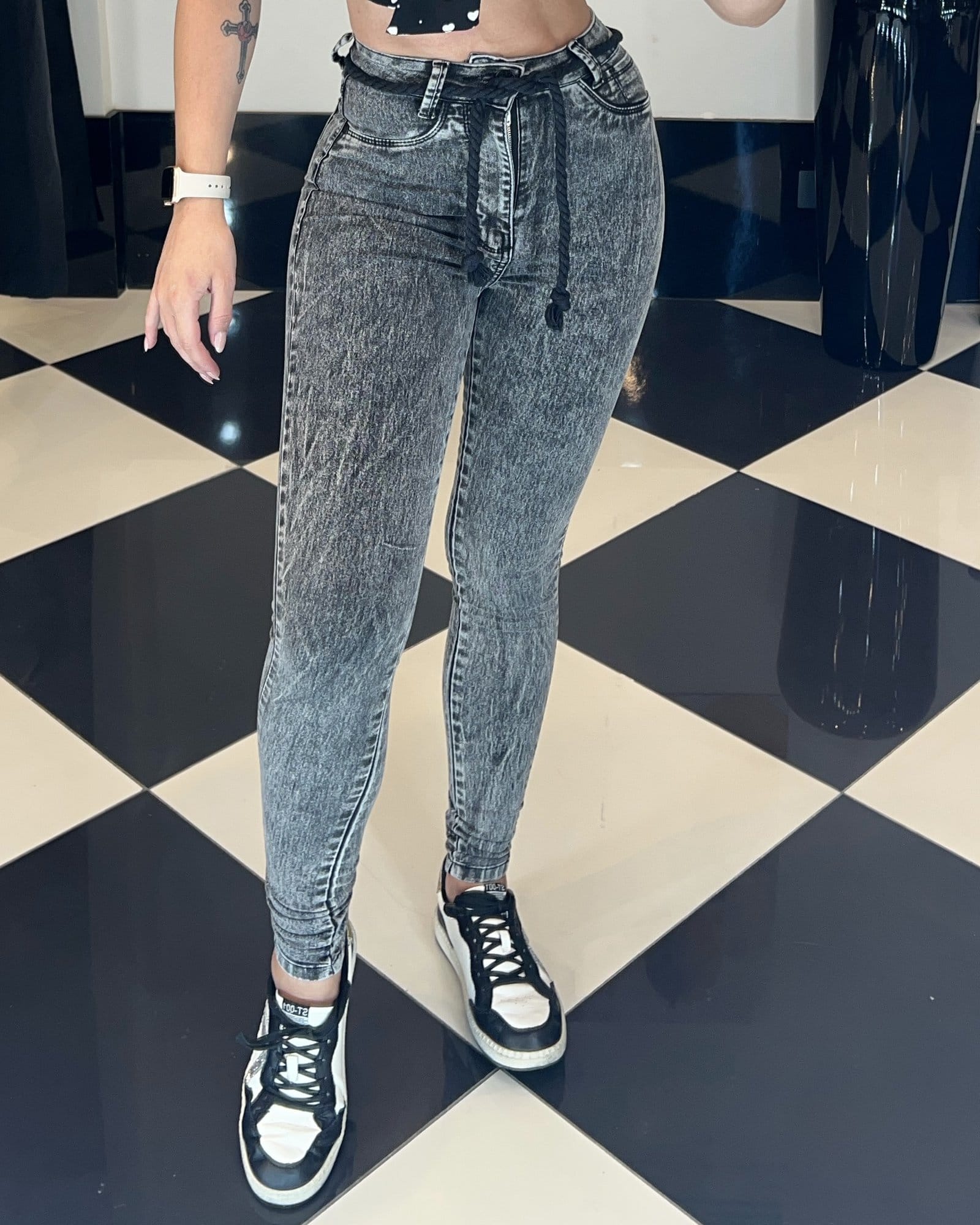 Calça Estonada Preta Sal e Pimenta Cordão