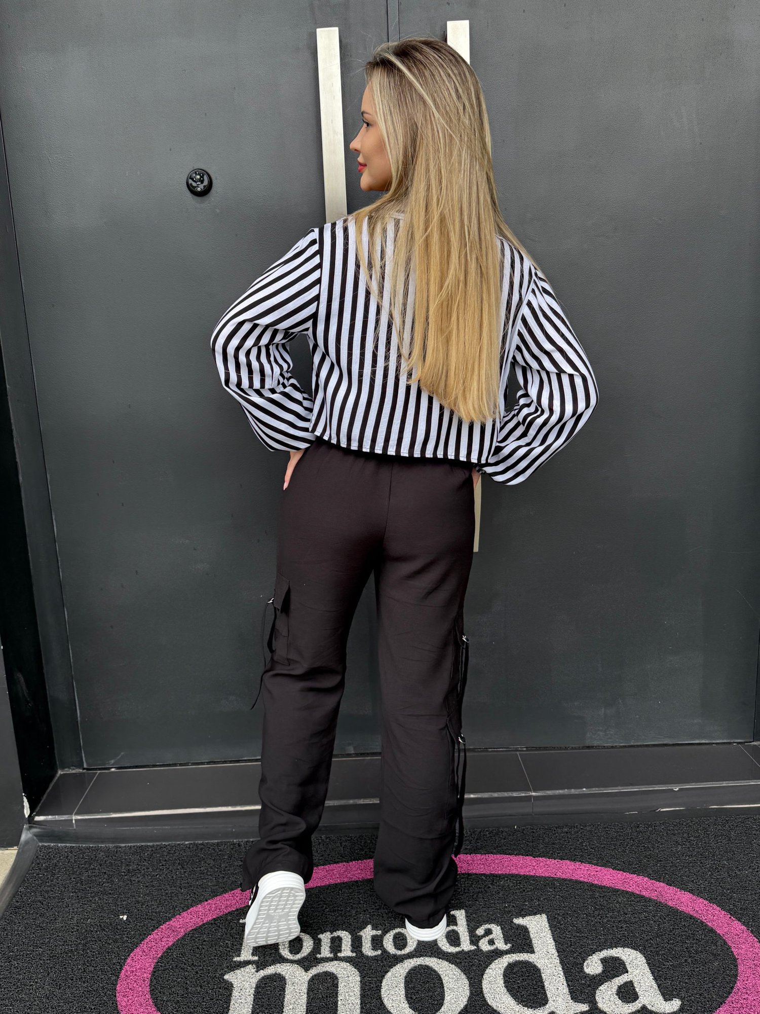 - possui bolsos na cintura e nas pernas;