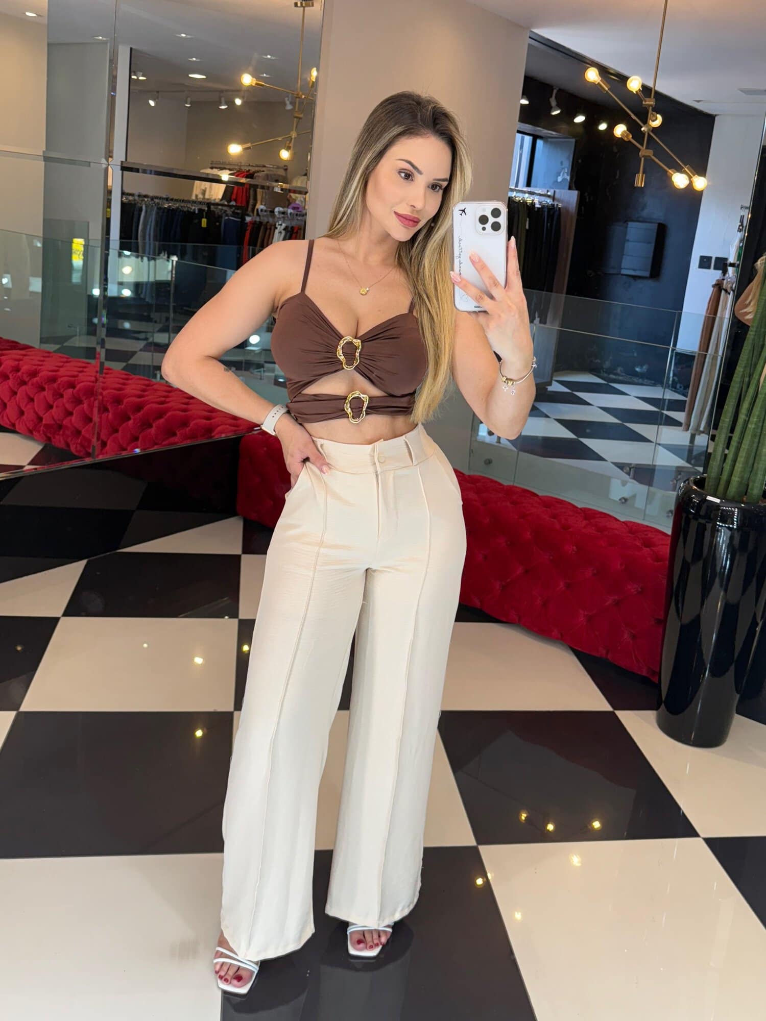 Medidas da modelo: Altura 1,70; Peso 60kg; Cintura 65cm; Busto 96cm; Quadril 101cm;