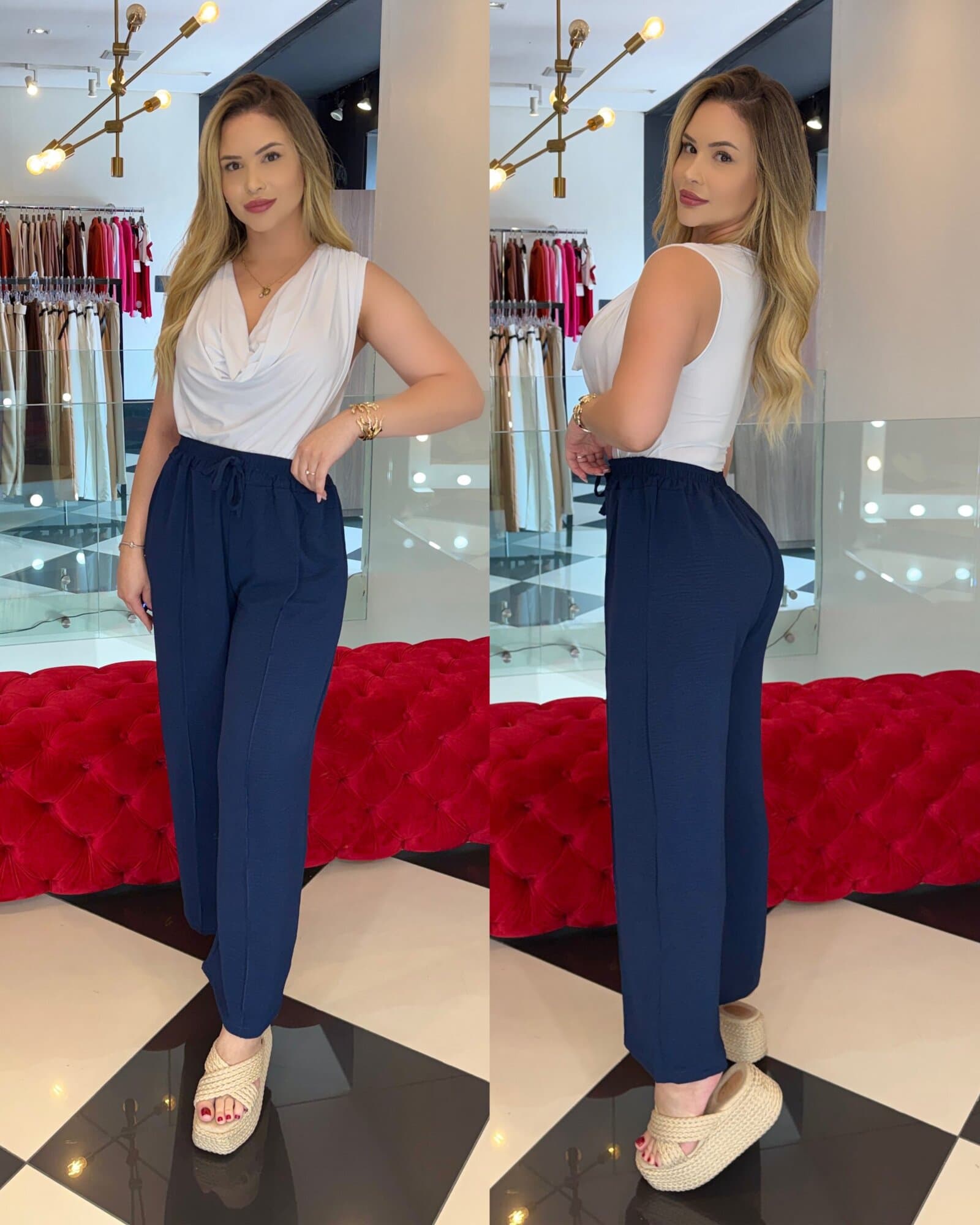 - modelo pantalona com barra feita;