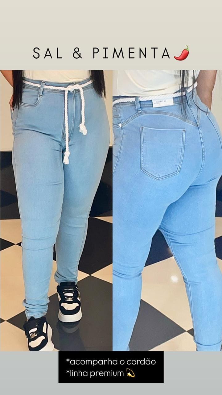 Calça Plus Size Azul Claro Sal e Pimenta com Cordão