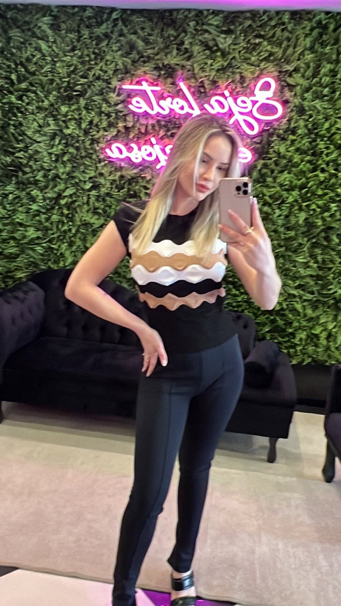 Medidas da modelo: Altura 1,70; Peso 60kg; Cintura 65cm; Busto 96cm; Quadril 101cm;