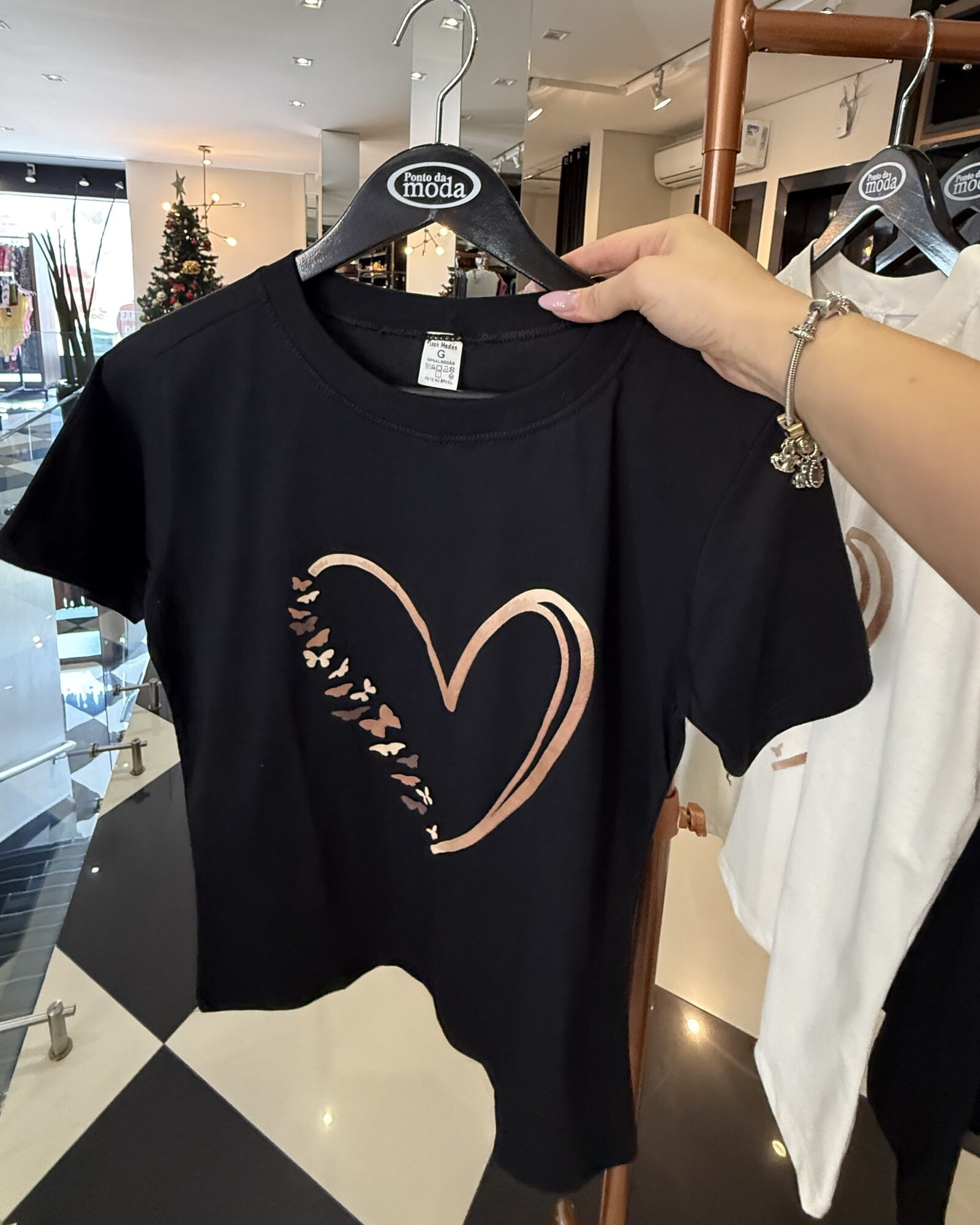 - modelo em tamanho único, veste P-G;