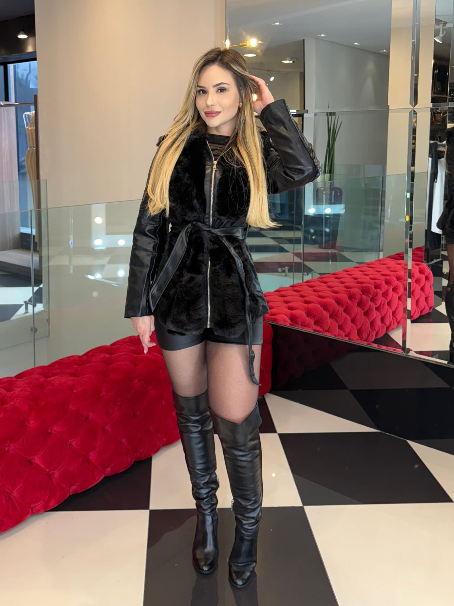 Medidas da modelo: Altura 1,70; Peso 62kg; Cintura 65cm; Busto 96cm; Quadril 101cm;