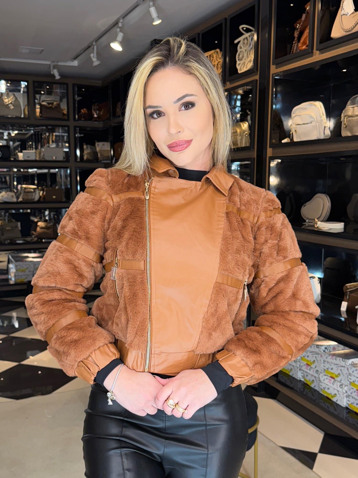 - tecido PU intercalado com pelinhos;