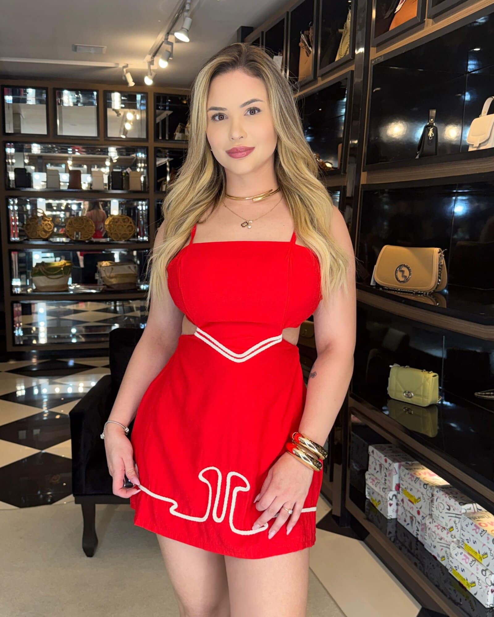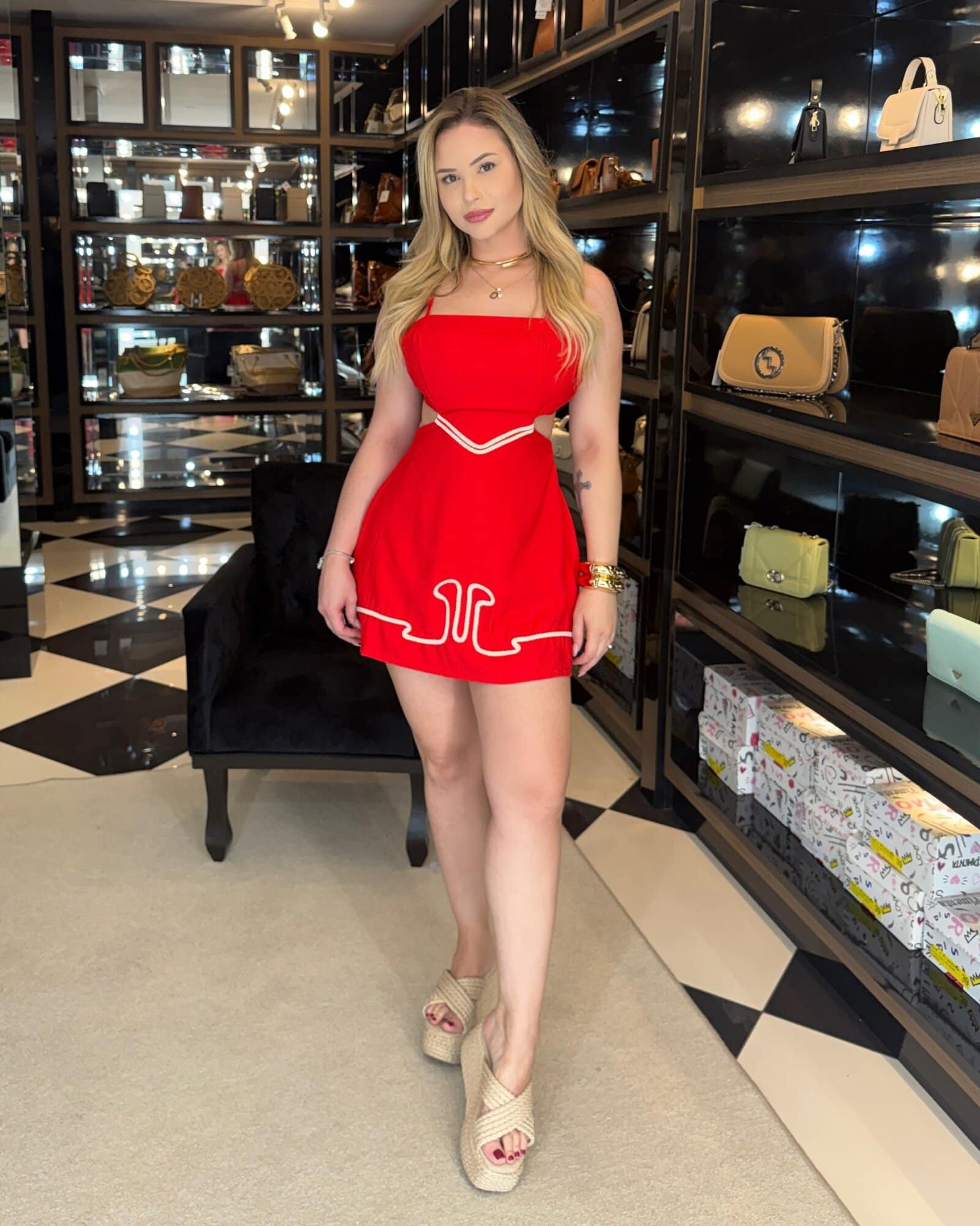 Medidas da modelo: Altura 1,70; Peso 62kg; Cintura 65cm; Busto 96cm; Quadril 101cm;