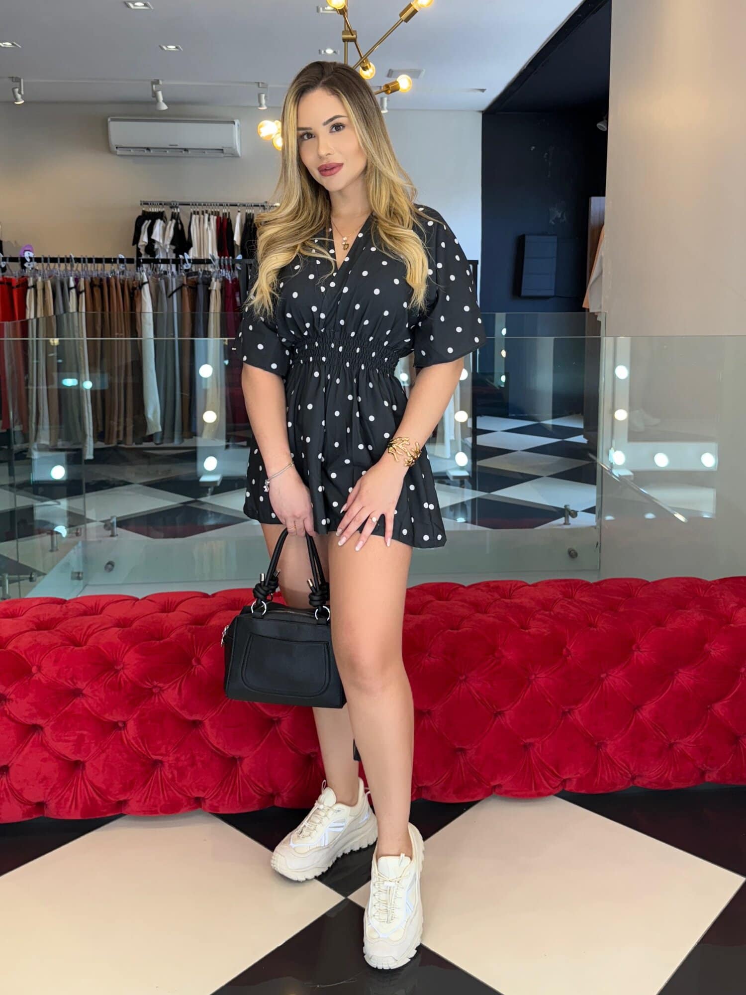 Macaquinho Yanka Estampa Poá Preto