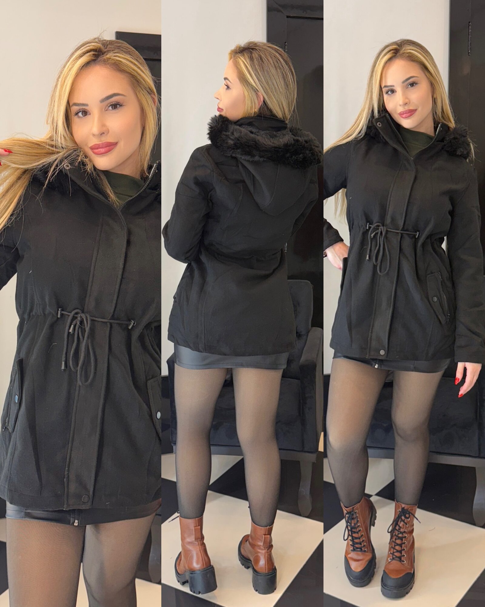 Parka Lã Batida Vânia Preta
