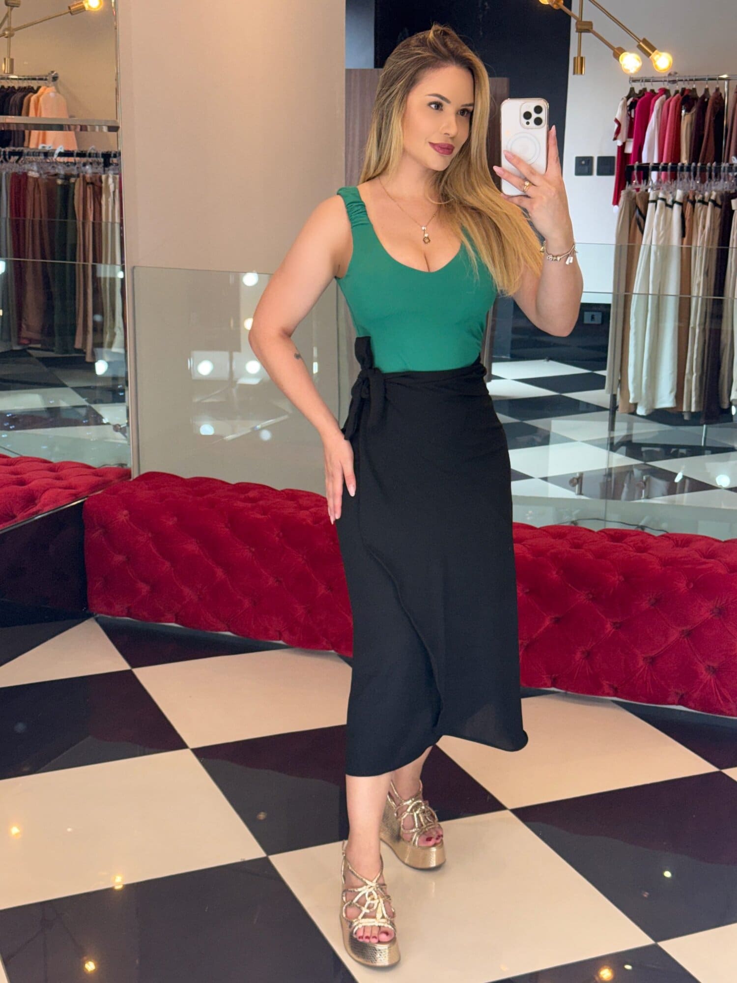 Peça Medida fora do corpo e sem esticar – Medida: 92 cm (comprimento) e cintura ajustável.
