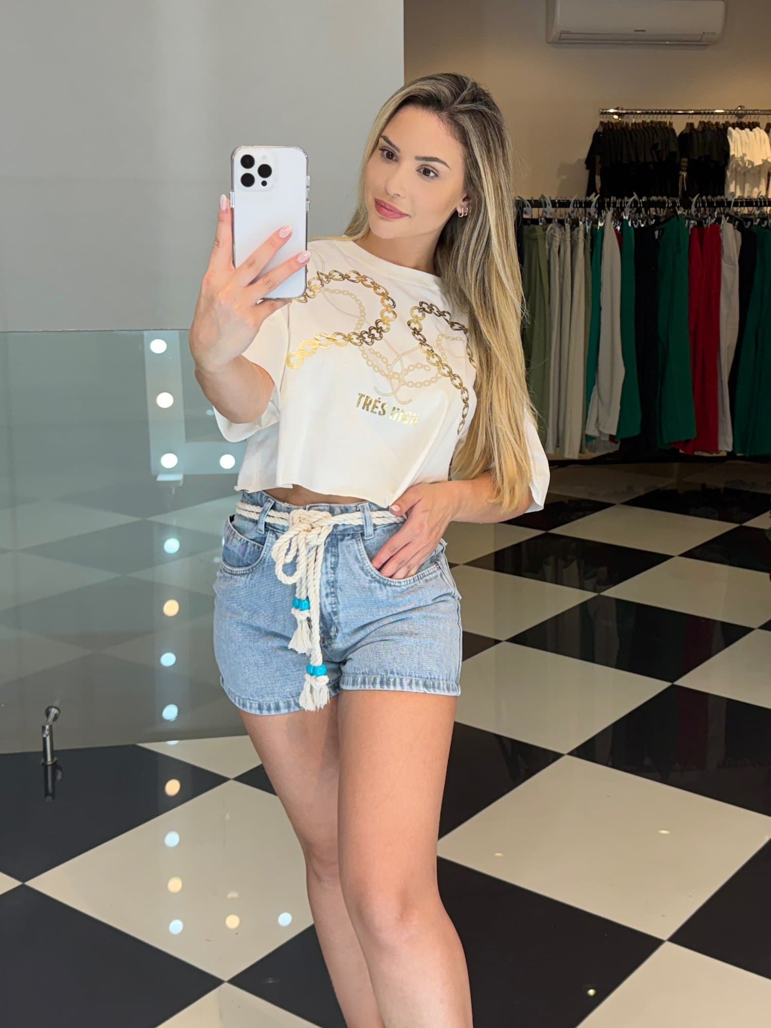 Medidas da modelo: Altura 1,70; Peso 60kg; Cintura 65cm; Busto 96cm; Quadril 101cm;