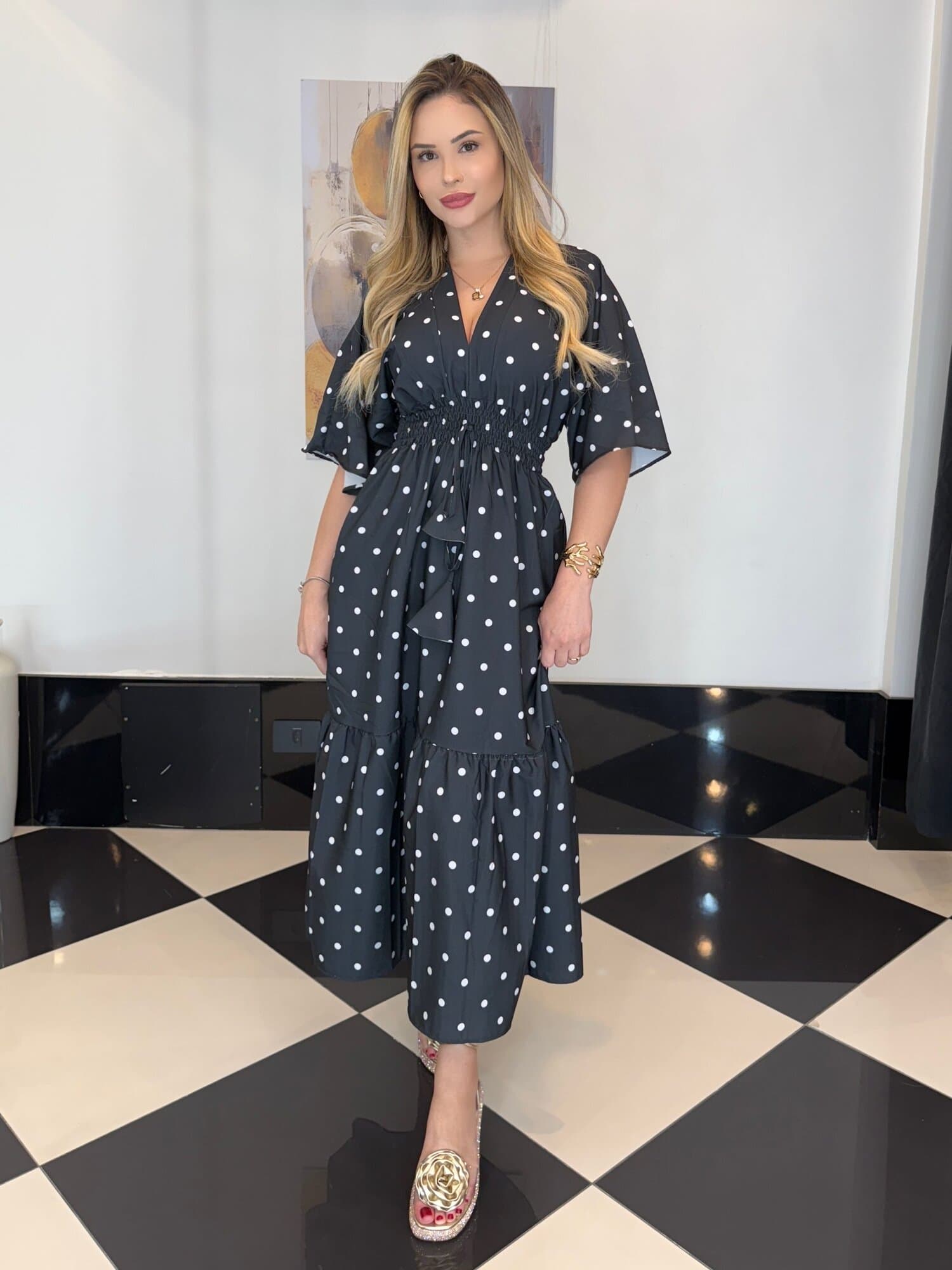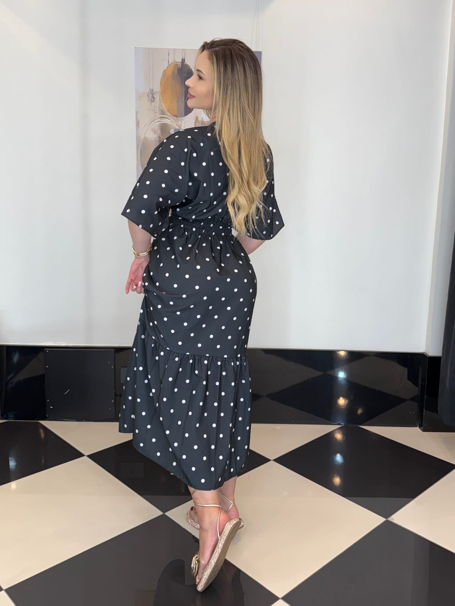 Vestido Brina Estampa Poá Preto