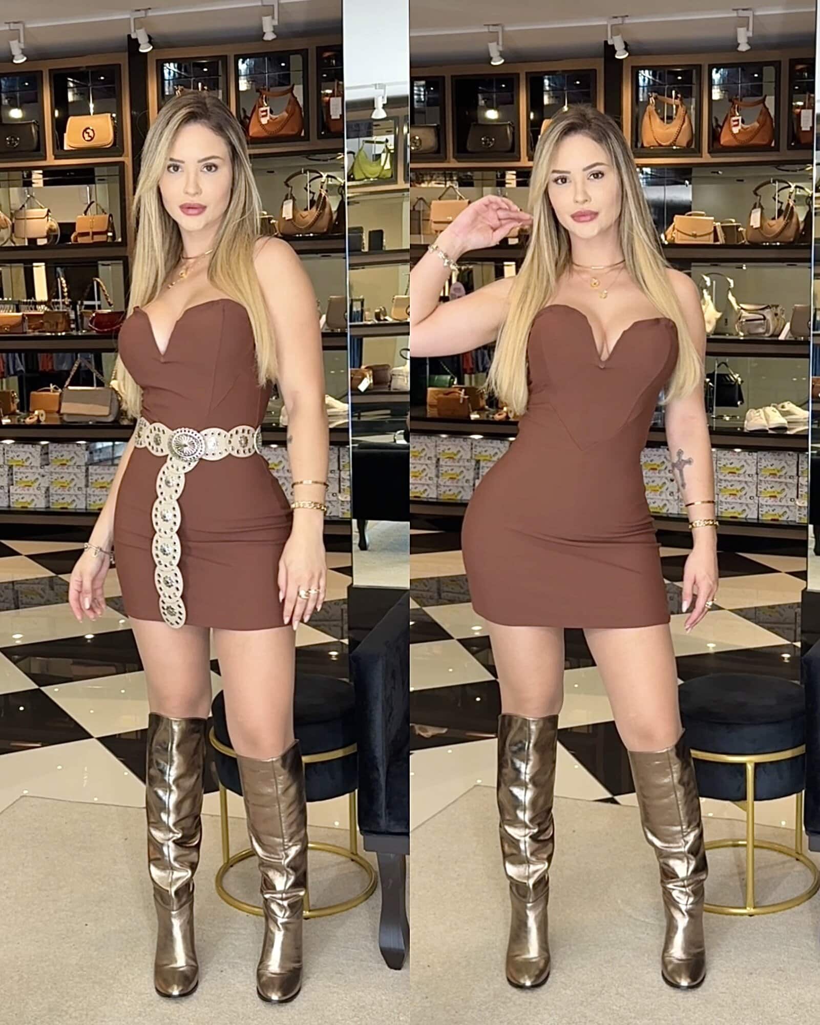 Medidas da modelo: Altura 1,70; Peso 62kg; Cintura 65cm; Busto 96cm; Quadril 101cm;