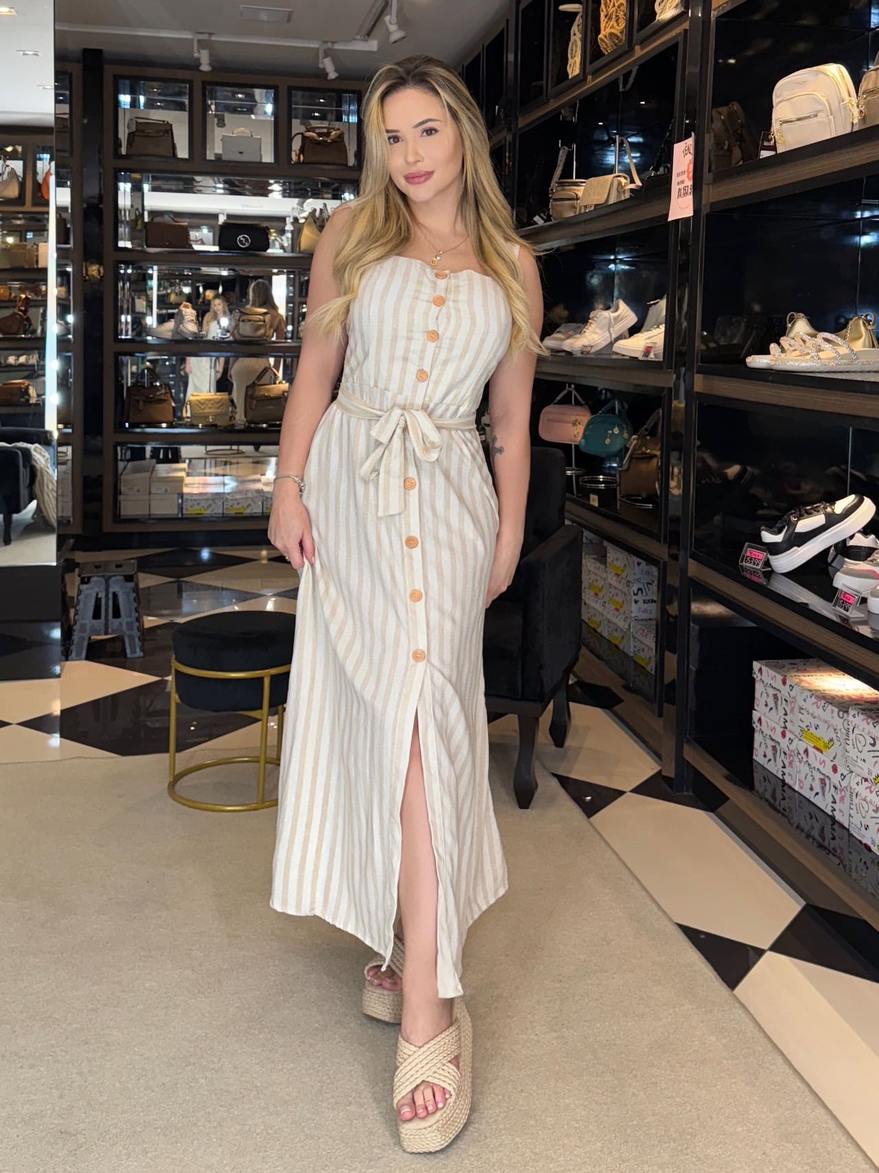 - vestido confeccionado em linho-algodão;