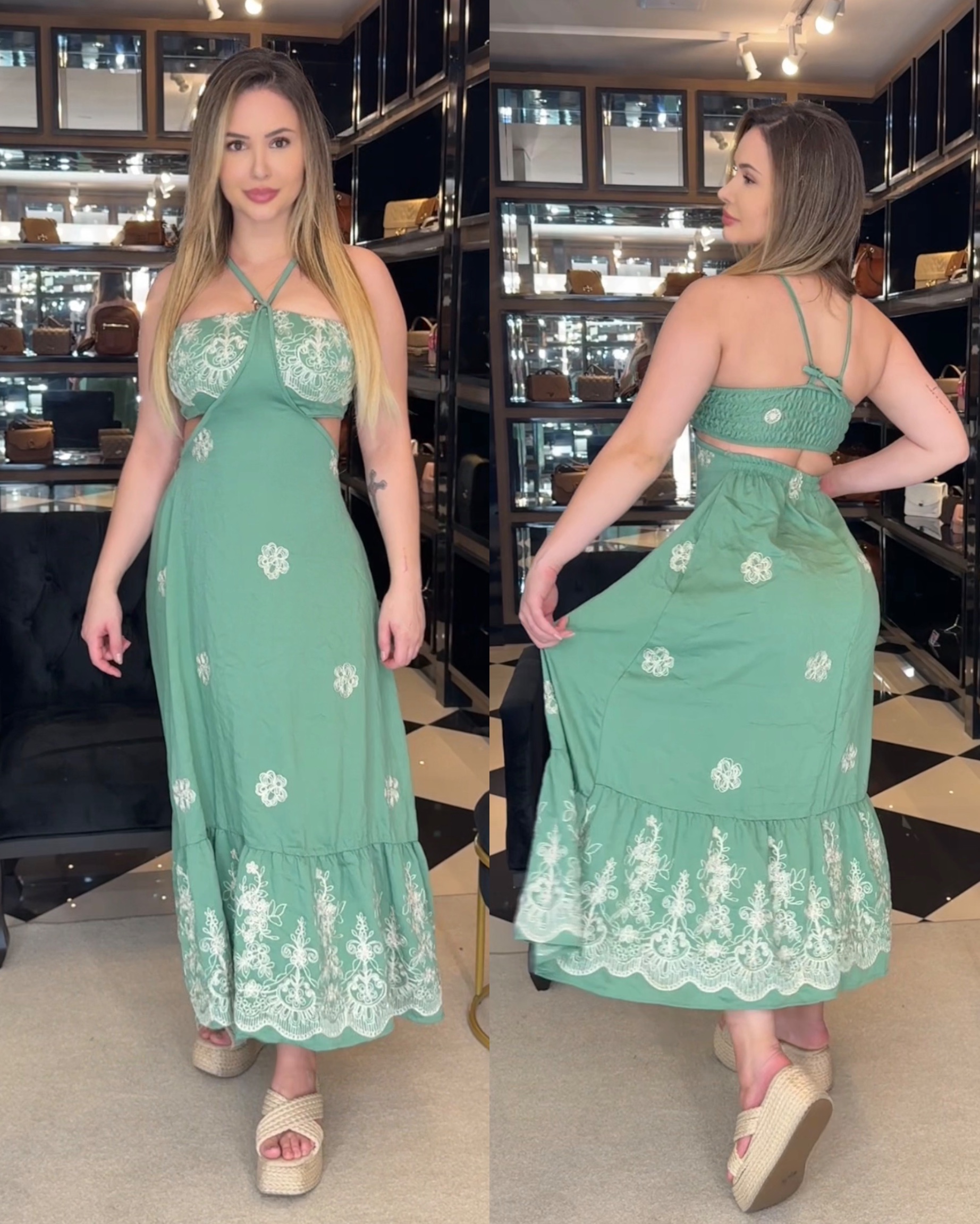 - vestido modelo longo;
